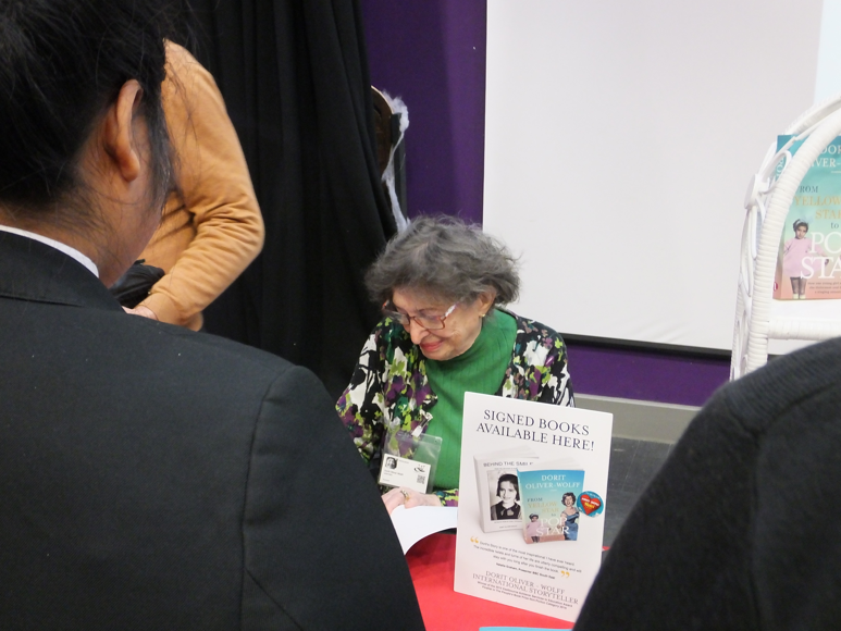 Assistant headteacher Mr Monahan said: "Despite her harrowing experiences her message was upbeat and optimistic. She was inspiring and hilarious in equal measure. The way she talked about her life was so entertaining. Some of her holocaust stories about hiding in the laundry basket among dead people's bedding, aged 8, as the nazis stabbed the baskets with bayonets- living in the basement of abandoned house for 9 months to escape detection were unimaginably horrific. But she went on to become a singer in a bar...then became a recording artist...was in a belly dancing group...and is now a published author. Our students were spellbound and all wanted a signed copy of her book. What an inspiration she is."
