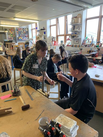 As well as being a newly qualified teacher, Ruth is also a professional Jeweller and on the 8th July she returned to SRWA to run a Jewellery making workshop with our year 8s. Ruth showed the students a series of jewellery making techniques before the challenging them to use the techniques to make their own silver ring.